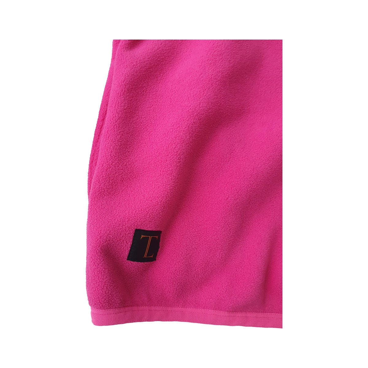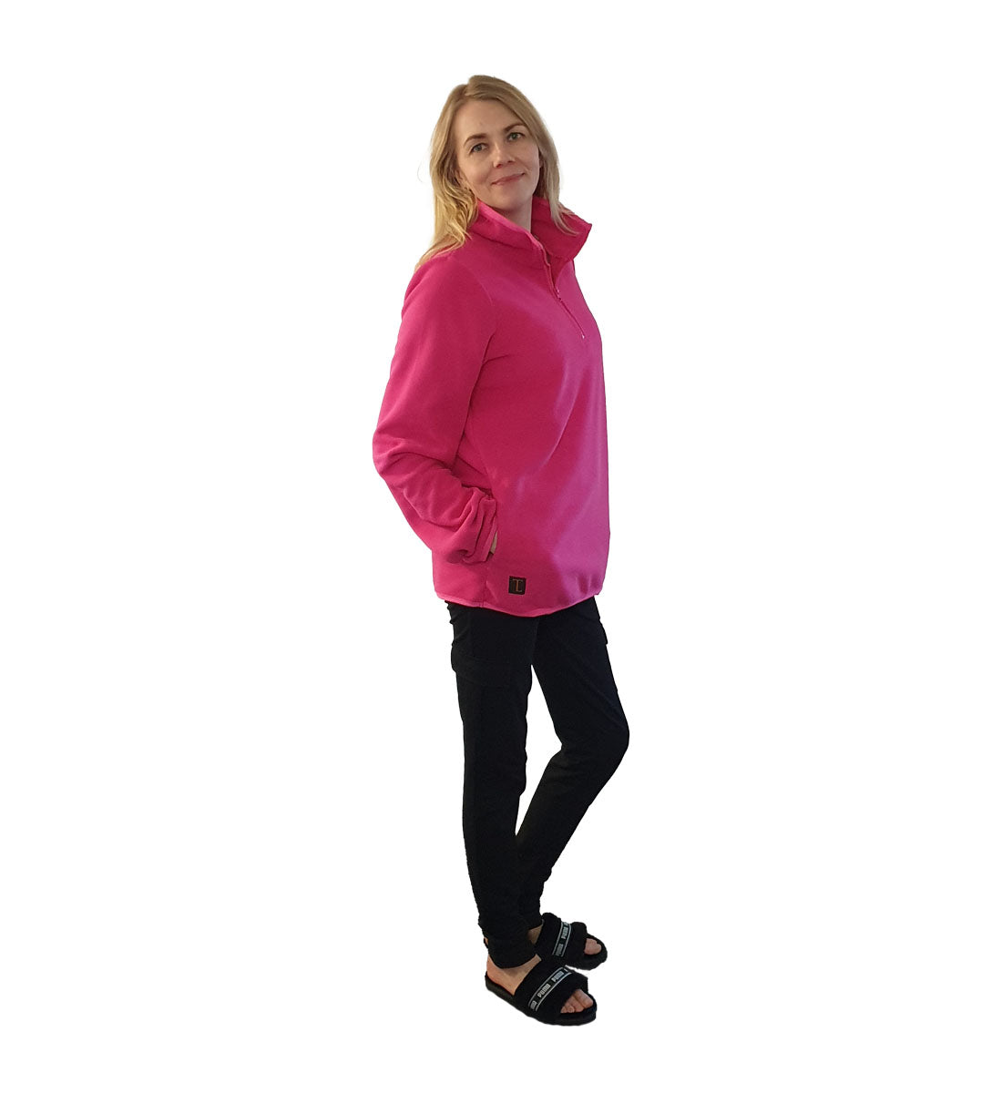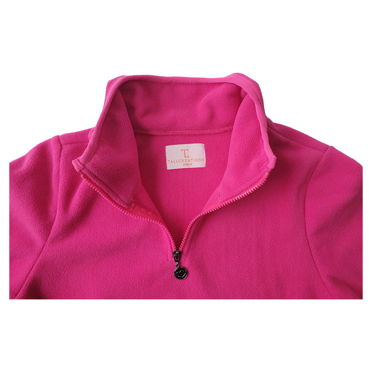 Polar fleece jumper, super warm! The sleeves and body length (76cm) are amazingly long. You may even have to take it in, when does that ever happen :)! Only a limited amount available so don't wait. Made from 100% polyester. This is a very loose fit so if you like it a bit tighter you can easily go down a size. Production has a pink zip pull.